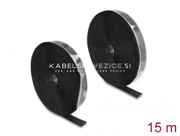 Delock samolepilni ježek trak z močnim lepilom, A in B stran, 15 m × 25 mm, črn (20857)