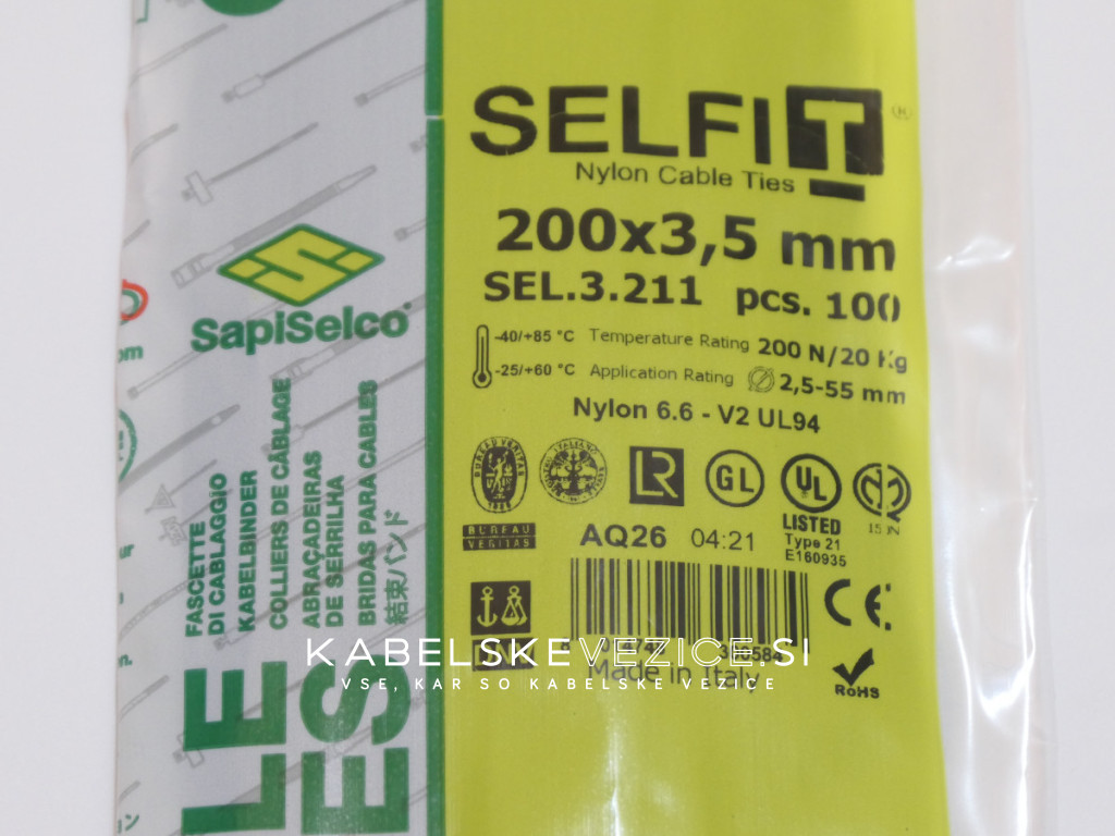 Kabelbinder 200x3,5 mm - schwarz, SapiSelco SELFIT Industriequalität, 1 Pack = 100 Stück [SEL.3.211]