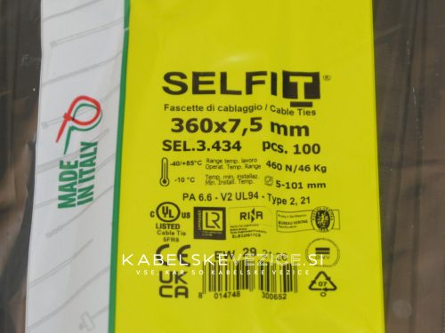 Kabelbinder 360x7,5 mm - schwarz, SapiSelco SELFIT Industriequalität, 1 Pack = 100 Stück [SEL.3.434]