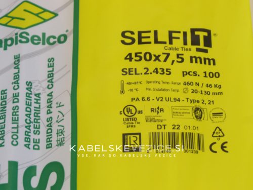 Kabelbinder 450x7,5 mm - natur, SapiSelco SELFIT Industriequalität, 1 Pack = 100 Stück [SEL.2.435]