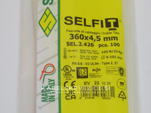 Cable tie 360x4.5 mm - natural, SapiSelco SELFIT industrial quality, 1 pack = 100 pcs [SEL.2.426]