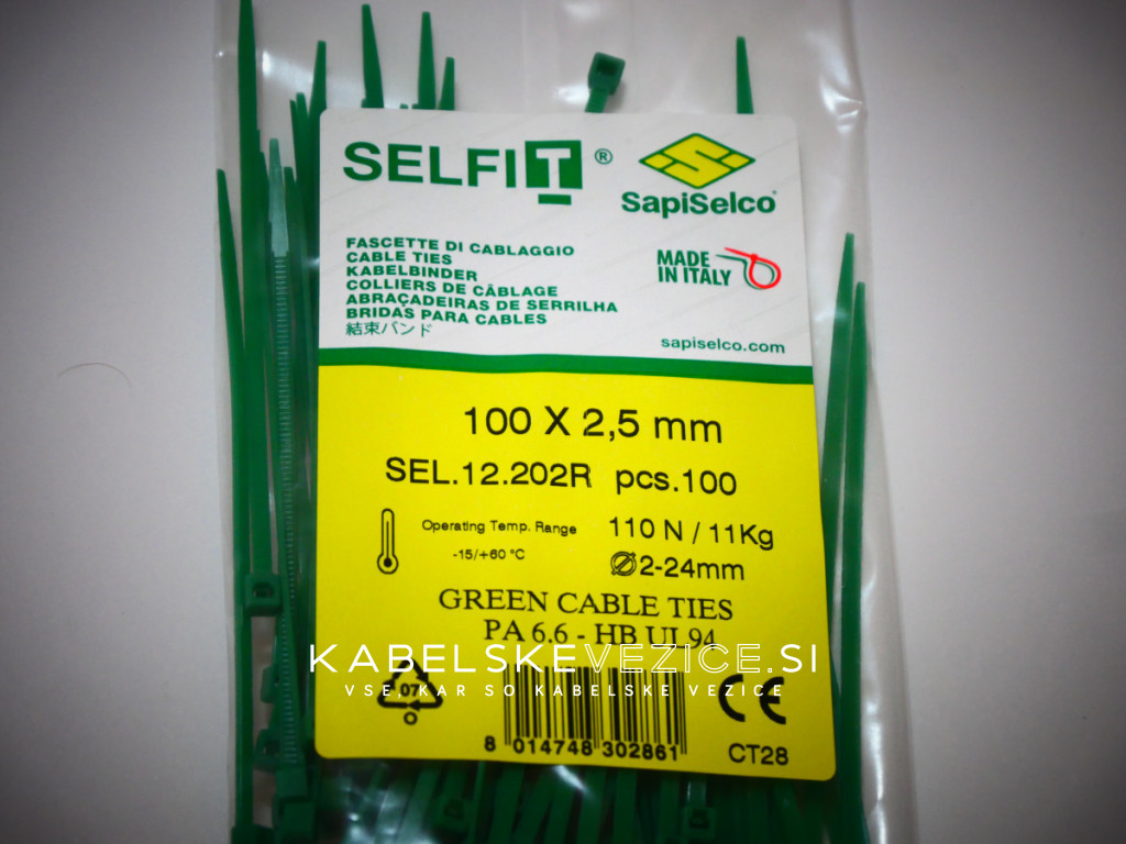 Green cable tie 100x2.5 mm SapiSelco - premium quality (1 pack / 100 pcs) [SEL.12.202R]