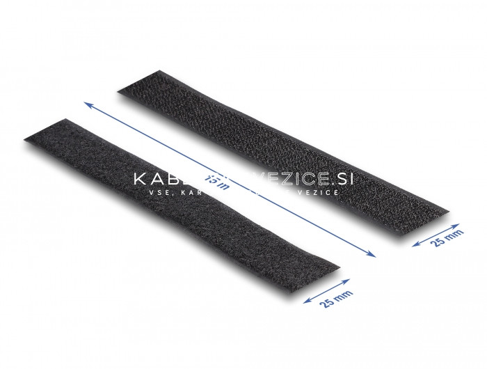 Self-adhesive hook-and-loop fastening tape with strong adhesive, cut-to-size, hook and loop sides, black 15 m x 25 mm